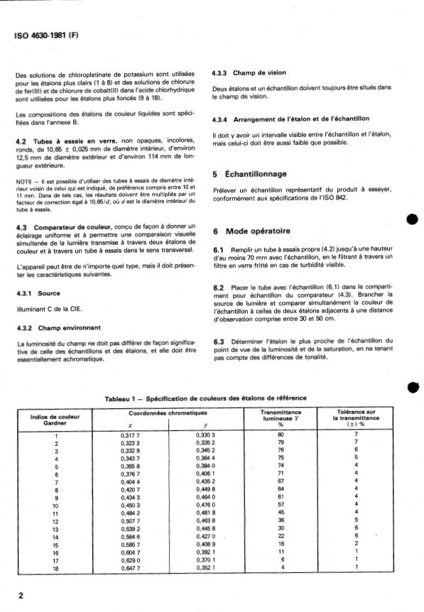 Son applicabilité à d'autres matériaux n'a pas été établie. NOTE - Les étalons de couleur en verre non conformes aux spécifica-