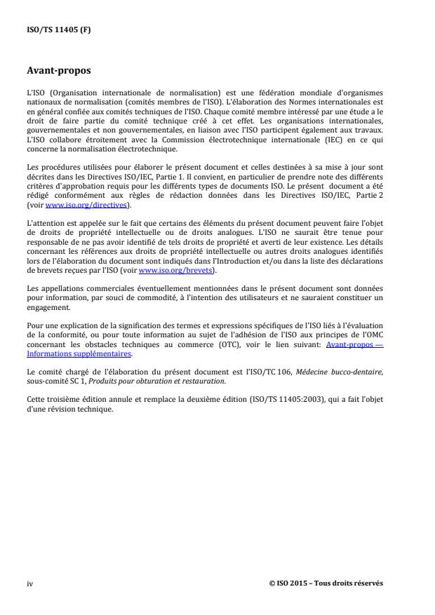 ISO/TS 11405:2015 - Médecine bucco-dentaire -- Essais d'adhésion a la structure de la dent