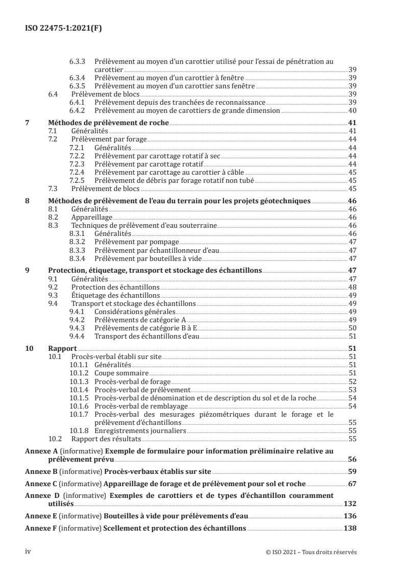 Le présent document traite des principes de prélèvement d’échantillons de sol, de roche et d’eau souterraine dans le cadre du programme de reconnaissance et d’essais géotechniques. NOTE 1 Le présent document remplit les exigences relatives aux méthodes de prélèvement d’échantillons de sol, de roche et d’eau souterraine et aux mesurages piézométriques dans le cadre du programme de reconnaissance et d’essais géotechniques selon l’EN 1997-1 et l’EN 1997-2. Ces reconnaissances ont pour objectifs: a) de prélever des échantillons de sol, de roche et d’eau d’une qualité appropriée pour évaluer le caractère adéquat d’un site à des fins d’ingénierie géotechnique et pour déterminer en laboratoire les caractéristiques requises concernant le terrain; b) d’obtenir des informations relatives à la succession, à l’épaisseur et à l’orientation des couches et des discontinuités; c) d’établir le type, la composition et la nature de la succession de couches; d) d’obtenir des informations sur l’état de l’eau souterraine et de prélever des échantillons d’eau en vue d’évaluer l’interaction entre l’eau souterraine, le sol, la roche et le matériau de construction. Le prélèvement de sol en vue d’une reconnaissance agricole et environnementale n’est pas couvert par le présent document. NOTE 2 Des directives sur le prélèvement de sol à ces fins incluant les sites contaminés ou potentiellement contaminés sont contenues dans la série ISO 18400. La norme ISO 18400-204 donne en outre des indications sur le prélèvement et la mesure du gaz du sol (terrain). NOTE 3 Les méthodes de prélèvement décrites dans le présent document peuvent ne pas convenir à tous les types de sol, par exemple la tourbe à structure fibreuse forte. NOTE 4 Certaines des méthodes de prélèvement décrites dans le présent document peuvent convenir au sol et à la roche. Le prélèvement de l’eau à des fins de contrôle de la qualité, de caractérisation de la qualité et d’identification des sources de pollution de l’eau, y compris les sédiments et les boues, n’est pas couvert par le présent document. NOTE 5 Le prélèvement de l’eau à ces fins est traité par la série ISO 5667.