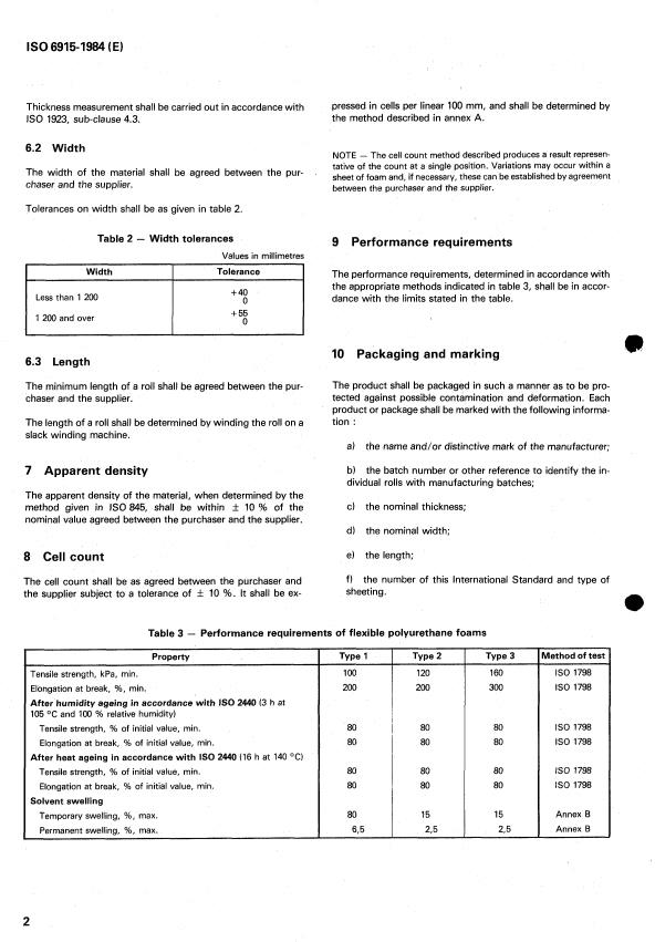 8 Descriptors : polymers, flexible cellular materials, polyurethane, foam, laminates, specifications, dimensions.