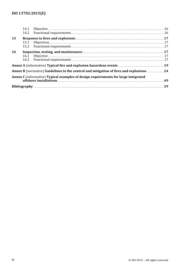 ISO 13702:2015 describes the objectives and functional requirements for the control and mitigation of fires and explosions on offshore installations used for the development of hydrocarbon resources. ISO 13702:2015 is applicable to the following: fixed offshore structures; floating systems for production, storage, and offloading; petroleum and natural gas industries.