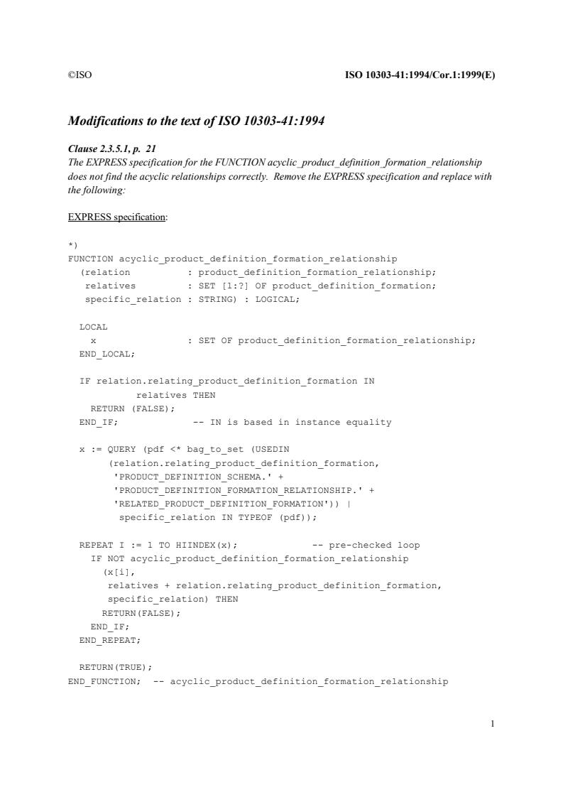 ISO 10303-41:1994/Cor 1:1999 - Industrial automation systems and integration — Product data representation and exchange — Part 41: Integrated generic resources: Fundamentals of product description and support — Technical Corrigendum 1 Released:6/10/1999