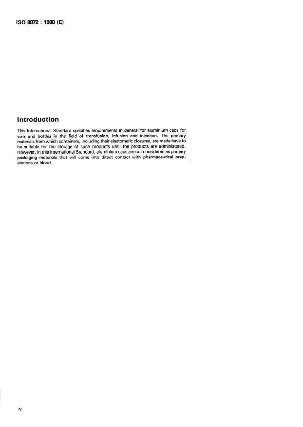 ISO 8872:1988 - Aluminium caps for transfusion, infusion and injection bottles -- General requirements and test methods