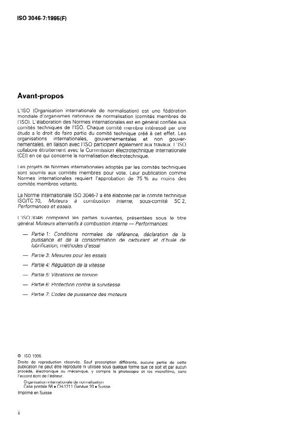 ISO 3046-7:1995 - Moteurs alternatifs a combustion interne -- Performances