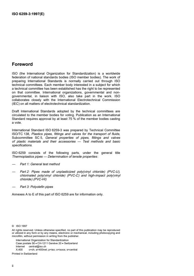 ISO 6259-3:1997 - Thermoplastics pipes -- Determination of tensile properties