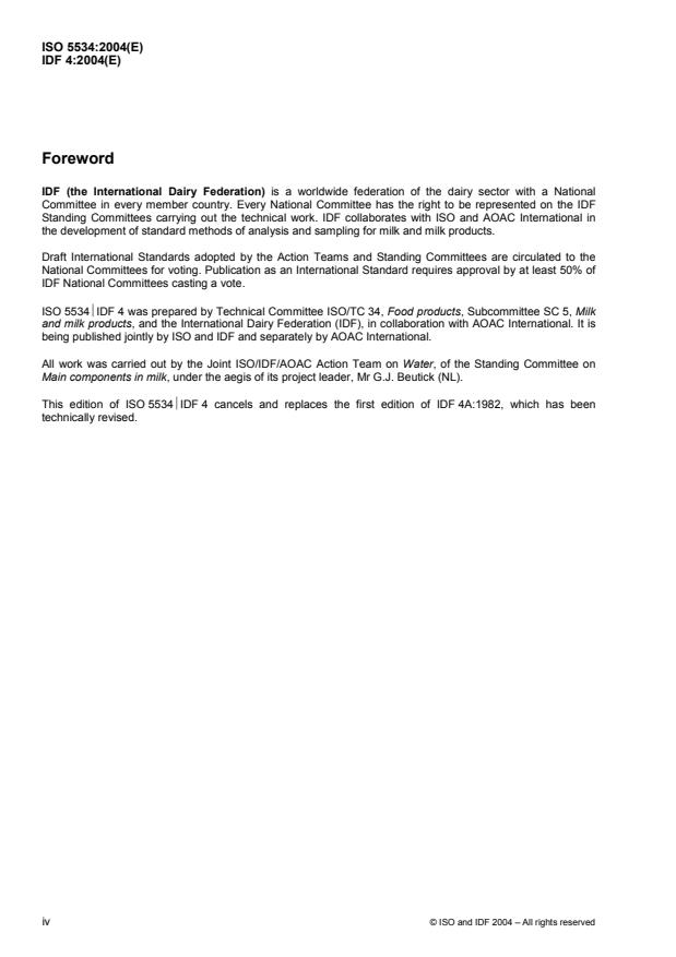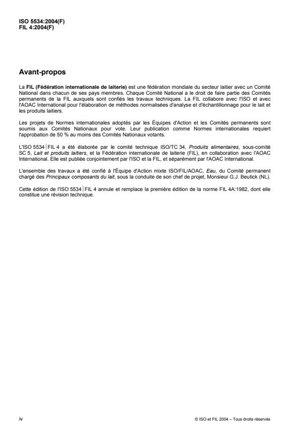L'ISO 5534FIL 4 a été élaborée par le comité technique ISO/TC 34, Produits alimentaires, sous-comité