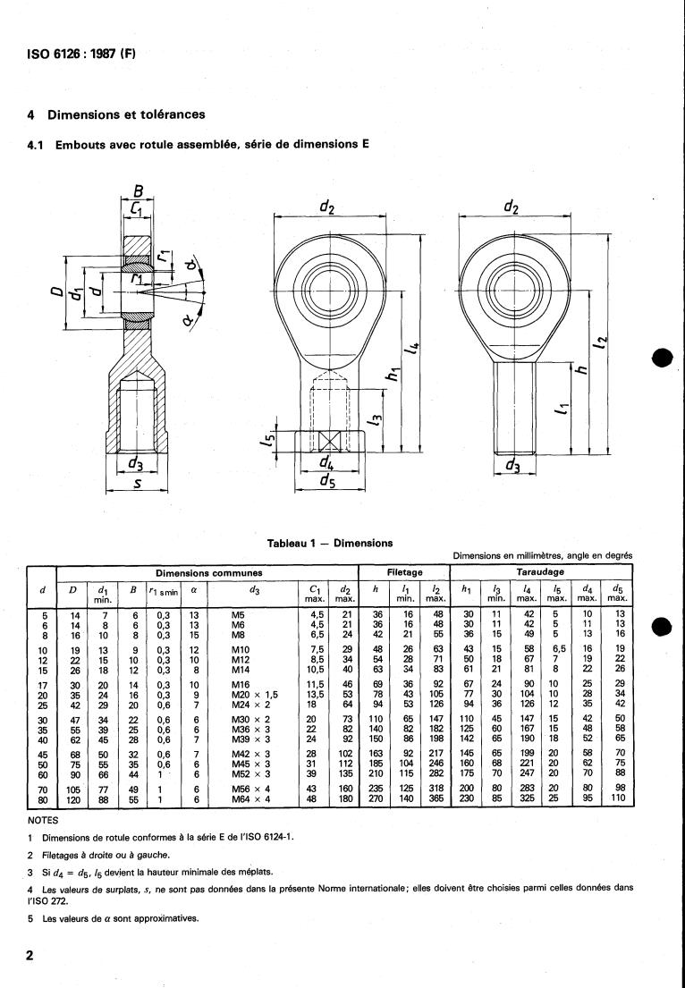 ISO 6126:1987 - Spherical plain bearing rod ends — Dimension series E and JK — Boundary dimensions and tolerances Released:11/12/1987