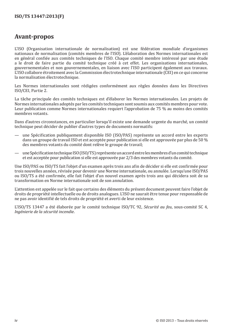 ISO/TS 13447:2013 is classified under the following ICS (International Classification for Standards) categories: 13.220.01 - Protection against fire in general. The ICS classification helps identify the subject area and facilitates finding related standards.