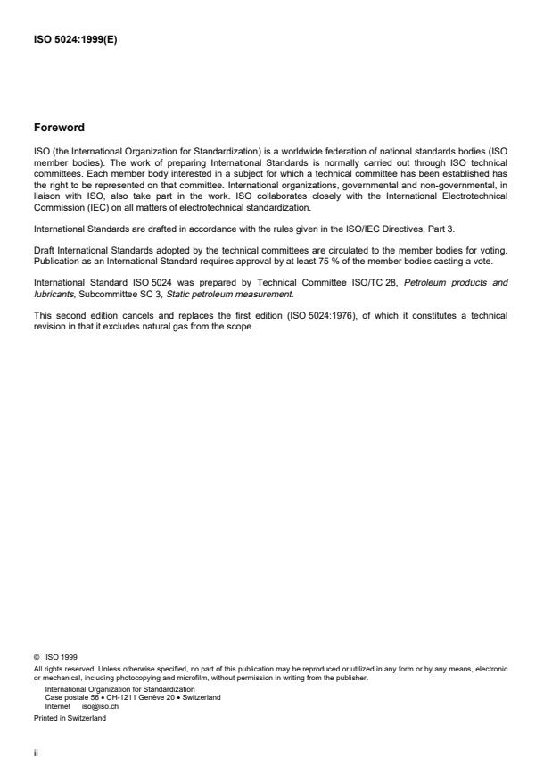 International Standard ISO 5024 was prepared by Technical Committee ISO/TC 28, Petroleum products and