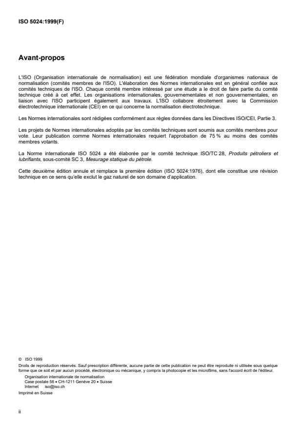 ISO 5024:1999 - Produits pétroliers liquides et gaz de pétrole liquéfiés -- Mesurage -- Conditions normales de référence