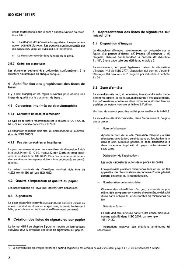 ISO 6234:1981 - Opérations bancaires -- Liste de signatures autorisées et leur représentation sur microfiche