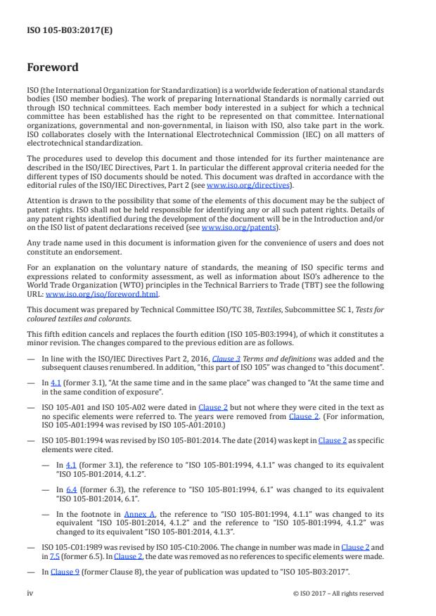 — À l’Article 9 (ancien Article 8), l’année de publication a été mise à jour par «ISO 105-B03:2017».