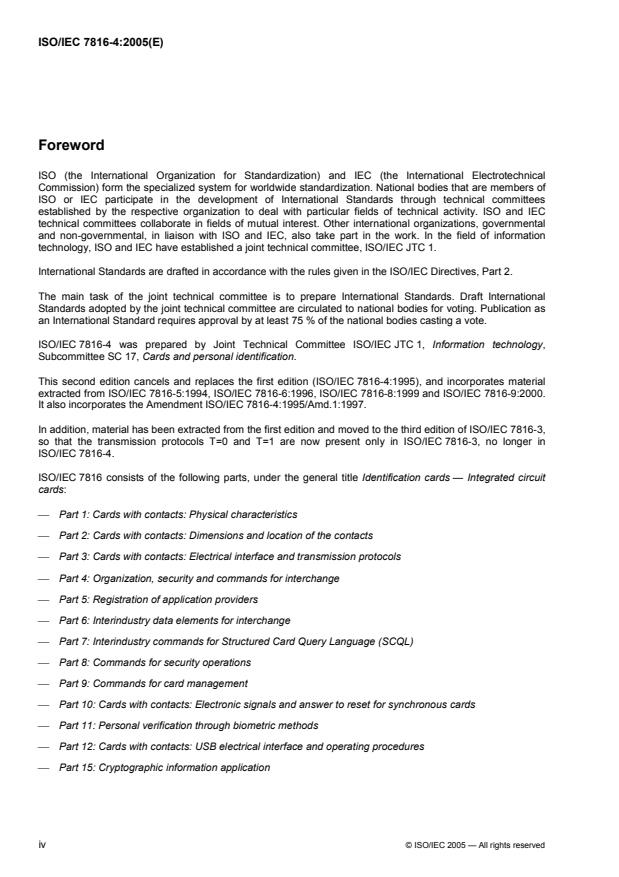 Ta slovenski standard je istoveten z: ISO/IEC 7816-4:2005