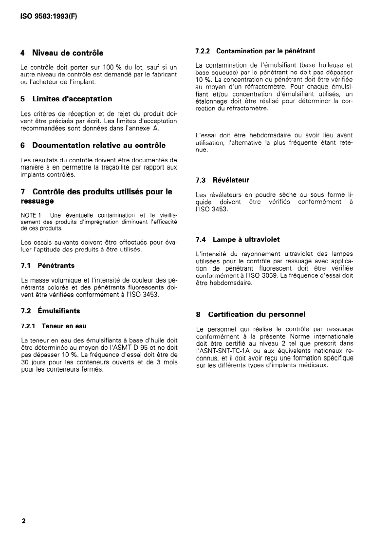 ISO 9583:1993 - Implants chirurgicaux — Essais non destructifs — Contrôle par ressuage des implants chirurgicaux métalliques Released:7. 10. 1993