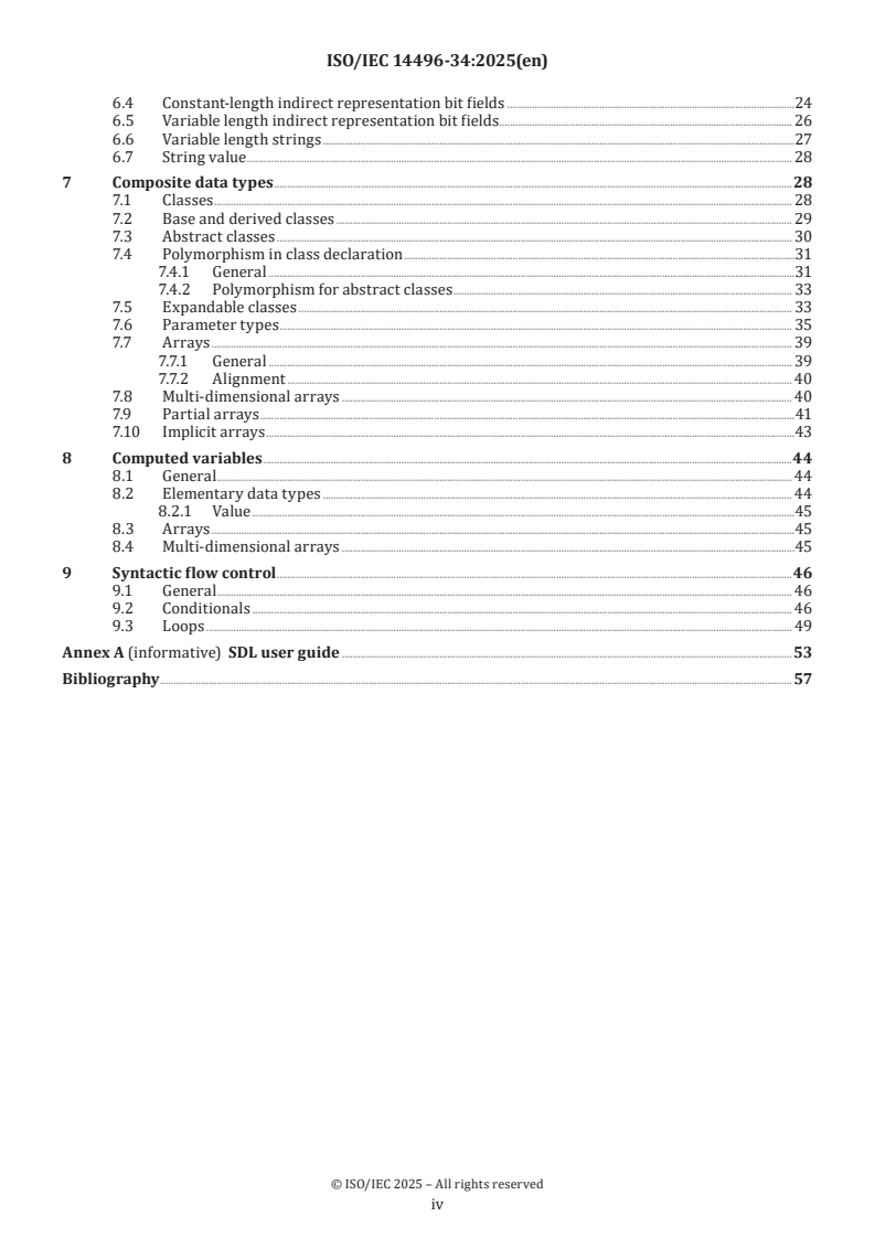 This document specifies a syntactic description language for describing the structure of binary data. It covers the representation of an SDL specification in plain text, the syntax of the SDL and the semantic rules of the SDL. In scenarios where the usage or interpretation of the SDL are ambiguous or undefined, this document attempts to specify whether such a scenario is considered an invalid SDL specification or will result in undefined behaviour. NOTE While the SDL borrows from and contains some aspects of a general-purpose programming language, it is not intended, nor is it suitable, to be used for such a purpose. This is reflected in the fact that many concepts related to general-purpose programming languages are not addressed in this document. Examples of concepts considered irrelevant to the SDL and therefore not addressed in this document include storage of an SDL specification in a file, compilation, execution, input/output, execution environment and machine architecture.