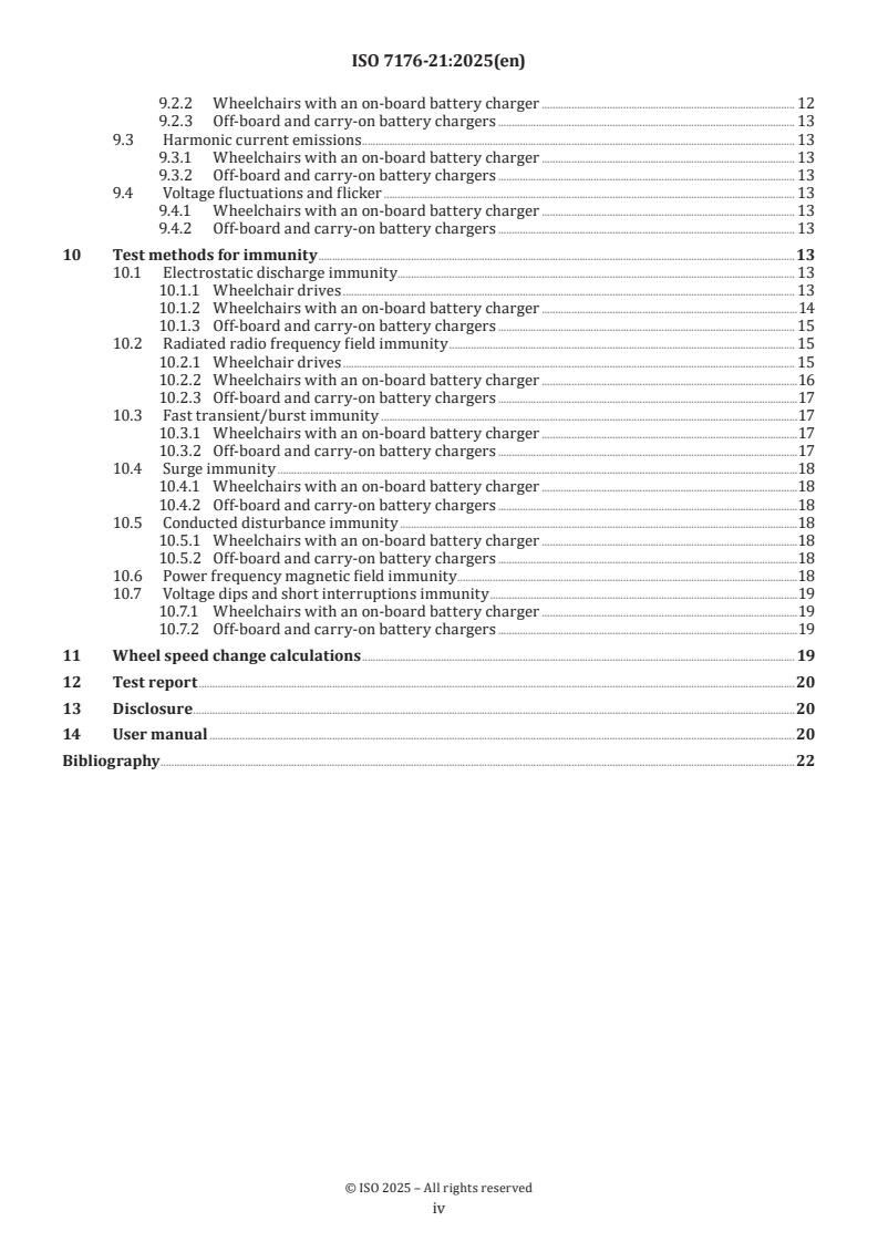 Keywords: ISO 7176-21:2025, electromagnetic compatibility, EMC, electrically powered wheelchairs, scooters, battery chargers, radiated emissions, ESD immunity, RF immunity, test methods.