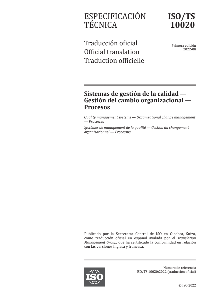 ISO/TS 10020:2022 - Quality management systems — Organizational change management — Processes Released:31. 08. 2022