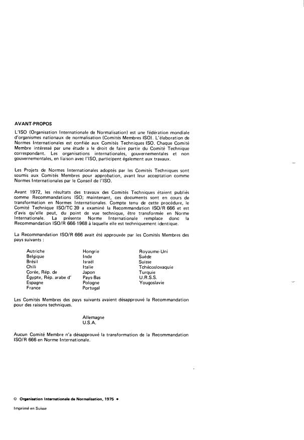 replaces IS0 Recommendation R 666-1968 to which it is technically identical.