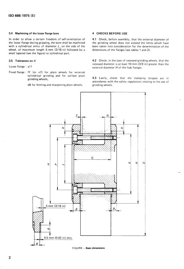 ISO 666:1975 - Machine tools -- Mounting of plain grinding wheels by means of hub flanges