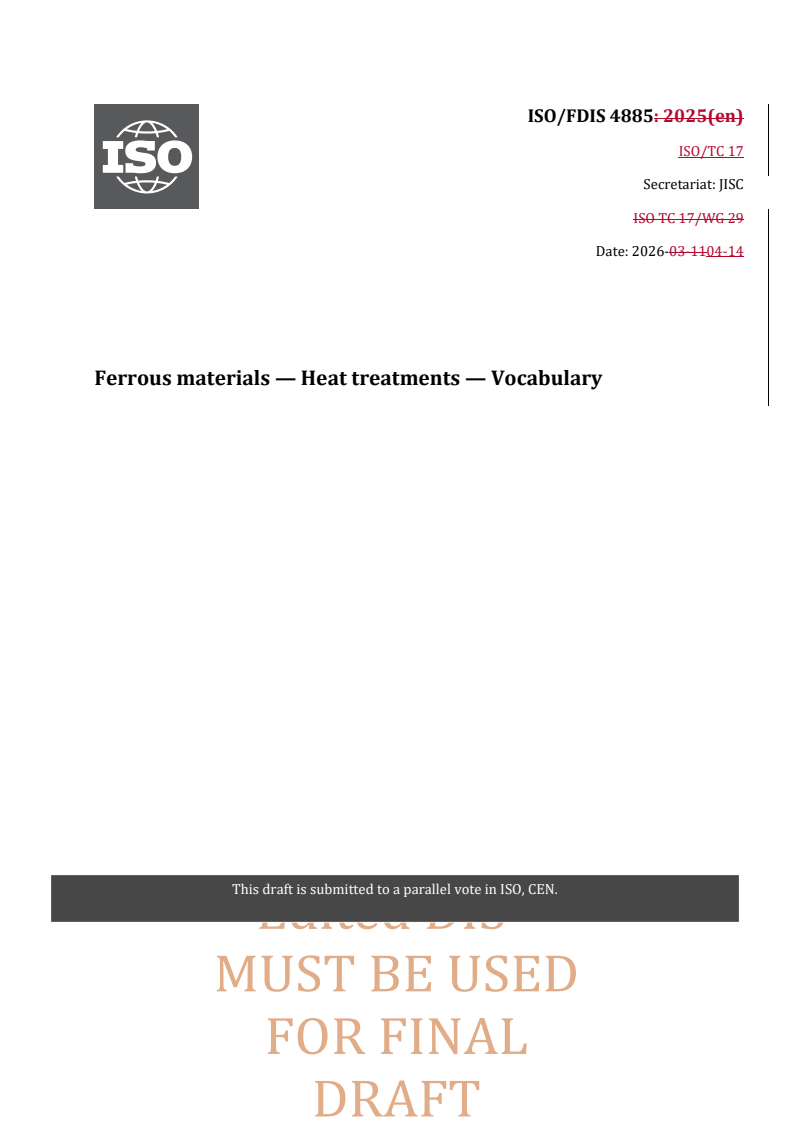 REDLINE ISO/FDIS 4885 - Ferrous materials — Heat treatments — Vocabulary