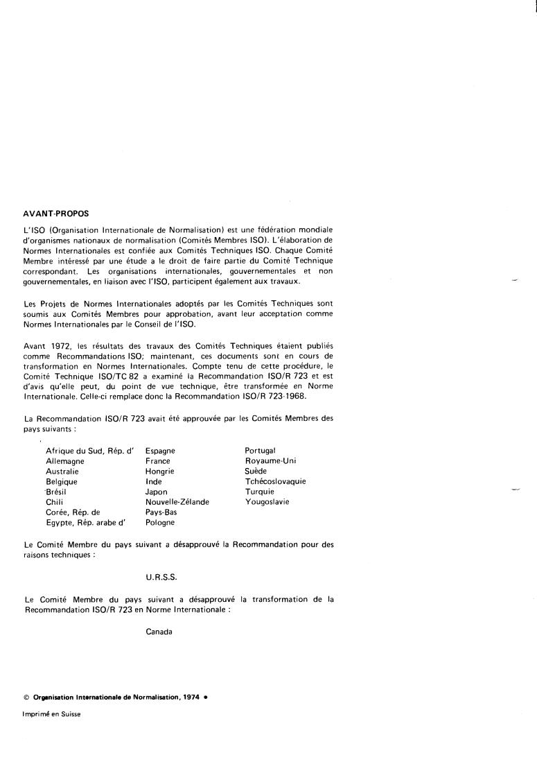 NORME INTERNATIONALE IS0 723-1974 (F)