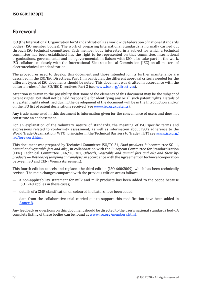 ISO 660:2020 - Corps gras d'origines animale et végétale — Détermination de l'indice d'acide et de l'acidité Released:4/24/2020