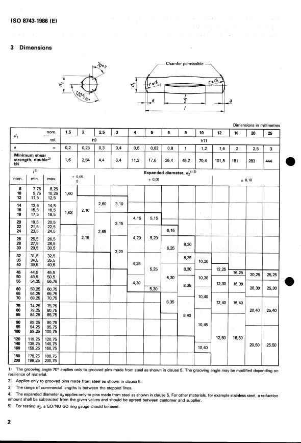 cause a positive locking fit when these grooved pins are forced into a drilled hole equal to the nominal diameter dl (see clause 4).