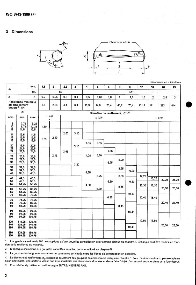Descripteurs : élément de fixation, goupille, goupille cannelée, spécification, dimension, désignation.