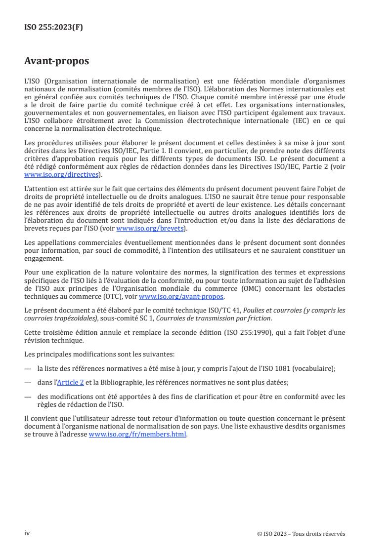 Le présent document a été élaboré par le comité technique ISO/TC 41, Poulies et courroies (y compris les