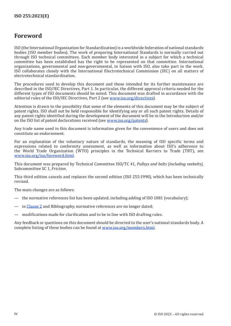 ISO 255:2023 is classified under the following ICS (International Classification for Standards) categories: 21.220.10 - Belt drives and their components. The ICS classification helps identify the subject area and facilitates finding related standards.
