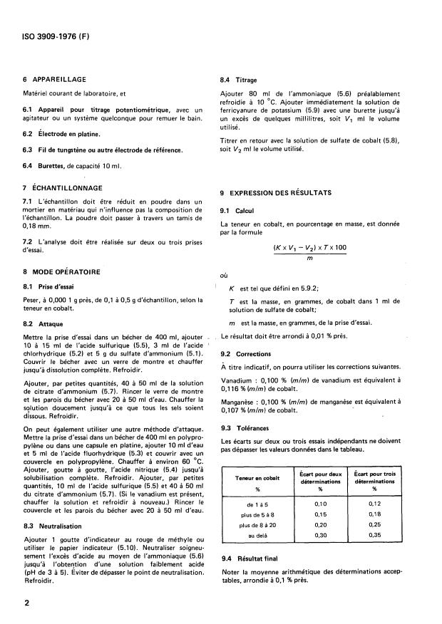 ISO 3909:1976 - Métaux-durs -- Détermination du cobalt -- Méthode potentiométrique