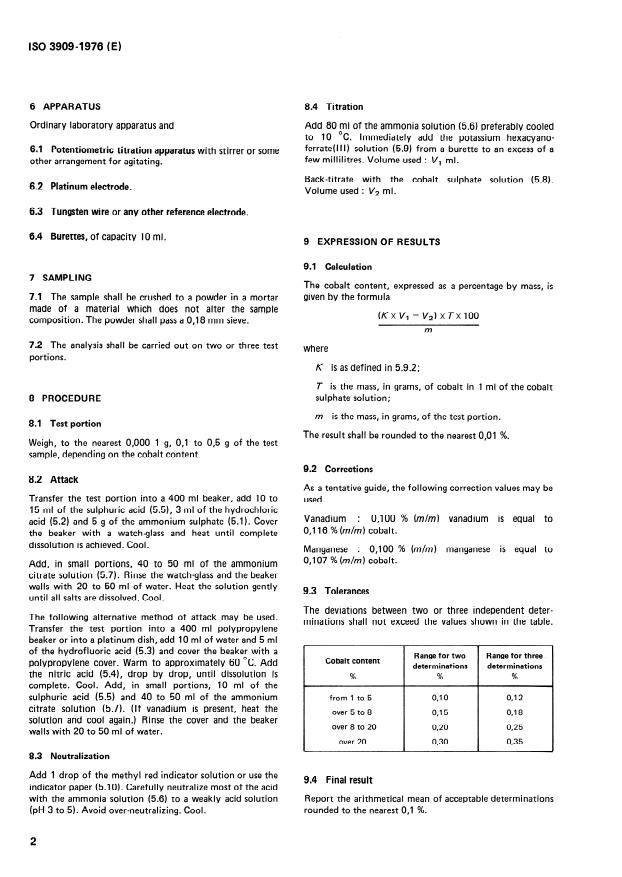 Keywords: ISO 3909:1976, cobalt determination, potentiometric method, hardmetals analysis, powder metallurgy, sintered hardmetal, binder metal content, cobalt quantification, chemical analysis, industrial materials testing, cobalt content measurement