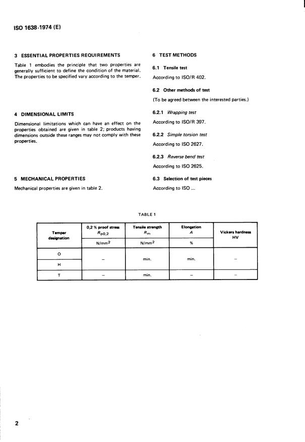 ISO 1638:1974 - Wrought copper and copper alloys -- Drawn solid products supplied in coils or on reels -- Mechanical properties