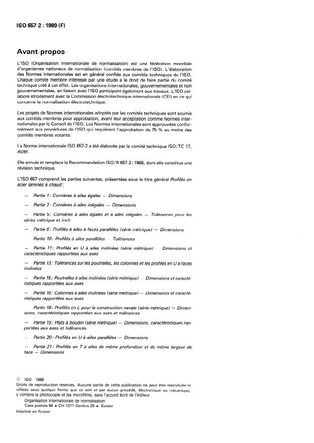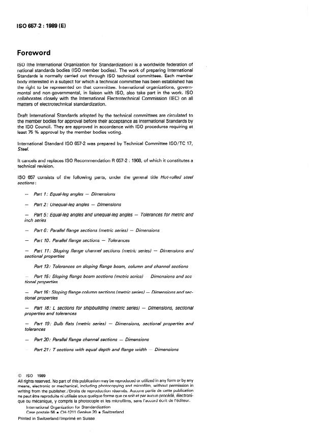 ISO 657 is a multipart standard concerning hot-rolled steel sections, and ISO 657-2:1989 relates closely to several other parts that provide complementary specifications: