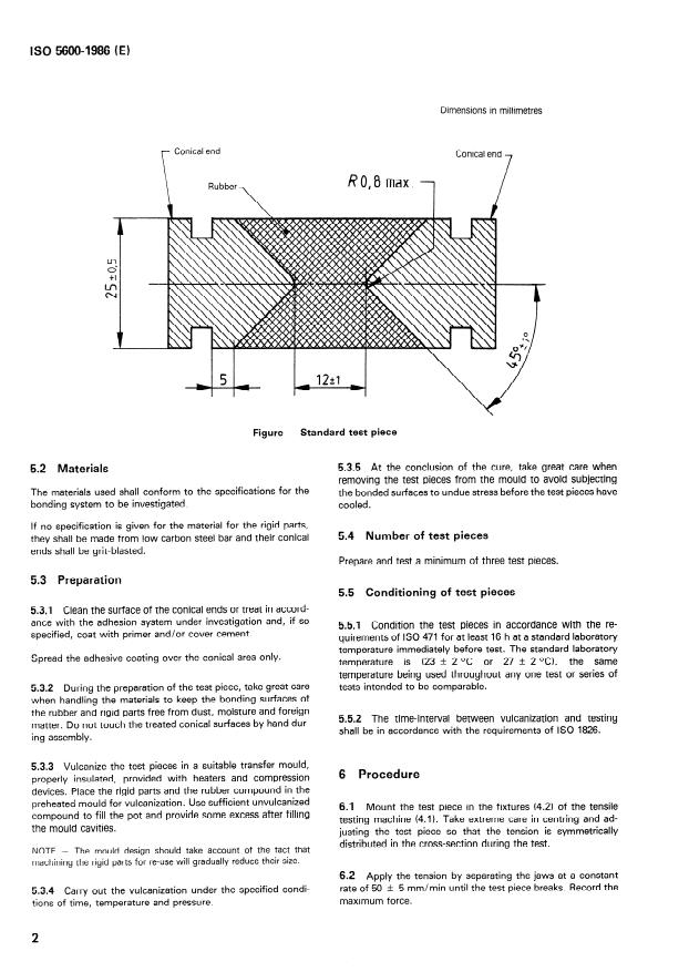 ISO 5600:1986 - Rubber -- Determination of adhesion to rigid materials using conical shaped parts