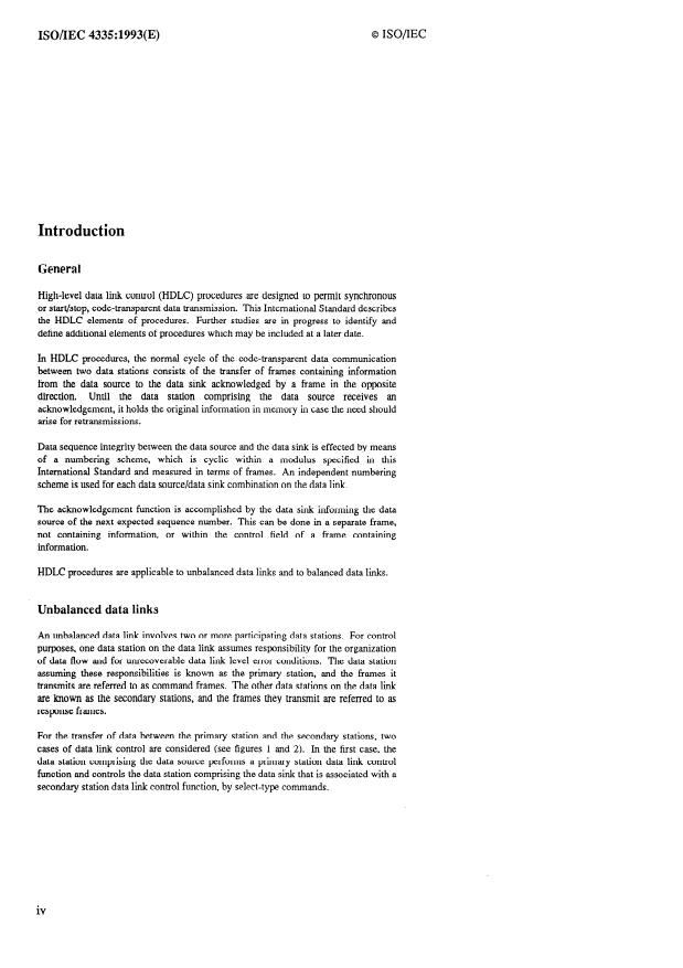 ISO/IEC 4335:1993 is a standard published by the International Organization for Standardization (ISO). Its full title is "Information technology —- Telecommunications and information exchange between systems — High-level data link control (HDLC) procedures — Elements of procedures". This standard covers: Specifies elements of data link control procedures for synchronous or start/stop, code-transparent data transmission using the HDLC frame structure specified in ISO/IEC 3309 and independent frame numbering in both directions. These HDLC elements of procedures are defined specifically in terms of the actions that occur on receipt of commands at a secondary station or a combined station.