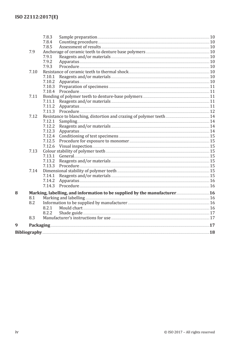 ISO 22112:2017 specifies the classification, requirements, and test methods for artificial teeth such as ceramic teeth and polymer teeth that are industrially manufactured for use in dental prostheses.