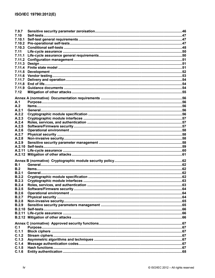 ISO/IEC 19790:2012 covers practical, testable security controls for cryptographic modules. Major technical topics include: