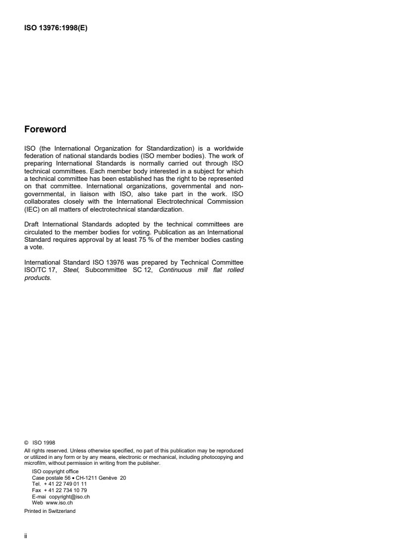 ISO 13976:1998 - Hot-rolled steel sheet in coils of structural quality and heavy thickness Released:2/17/2000