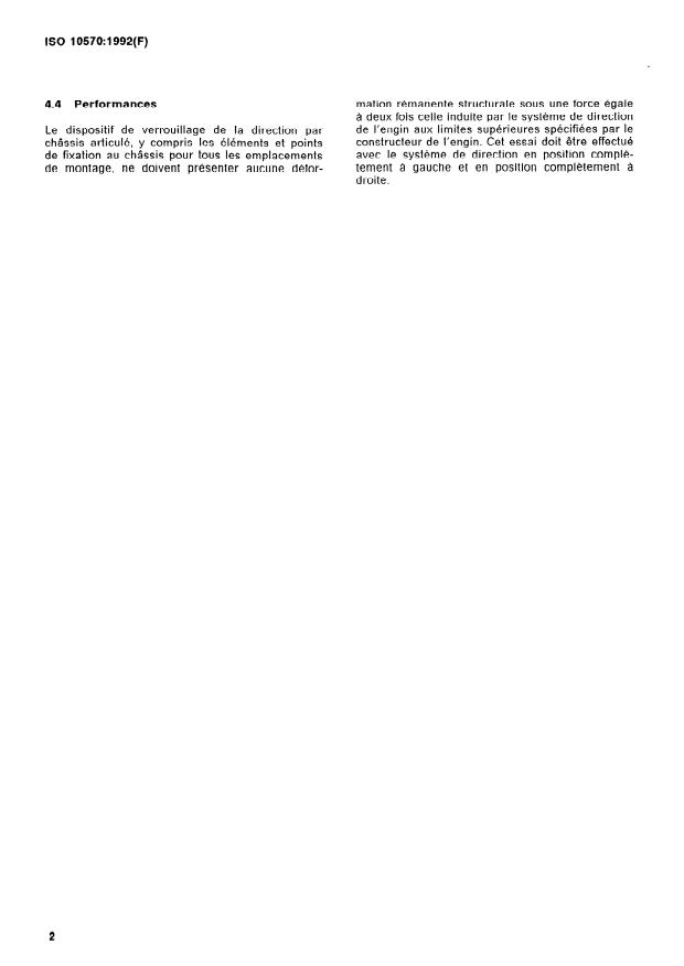 ISO 10570:1992 - Engins de terrassement -- Dispositif de verrouillage pour direction par châssis articulé -- Exigences de performance