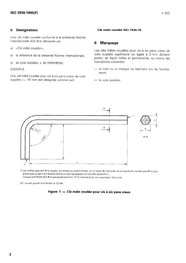 ISO 2936:1995 - Outils de manoeuvre pour vis et écrous -- Clés mâles coudées pour vis a six pans creux