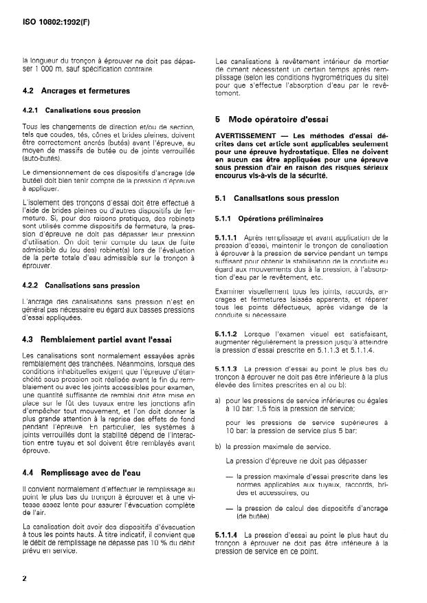 ISO 10802:1992 - Canalisations en fonte ductile -- Essais hydrostatiques apres pose
