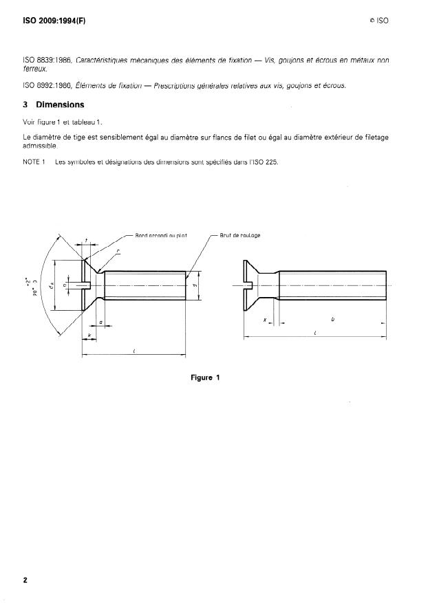 ISO 2009:1994 - Vis a métaux a tete fraisée fendue -- Grade A