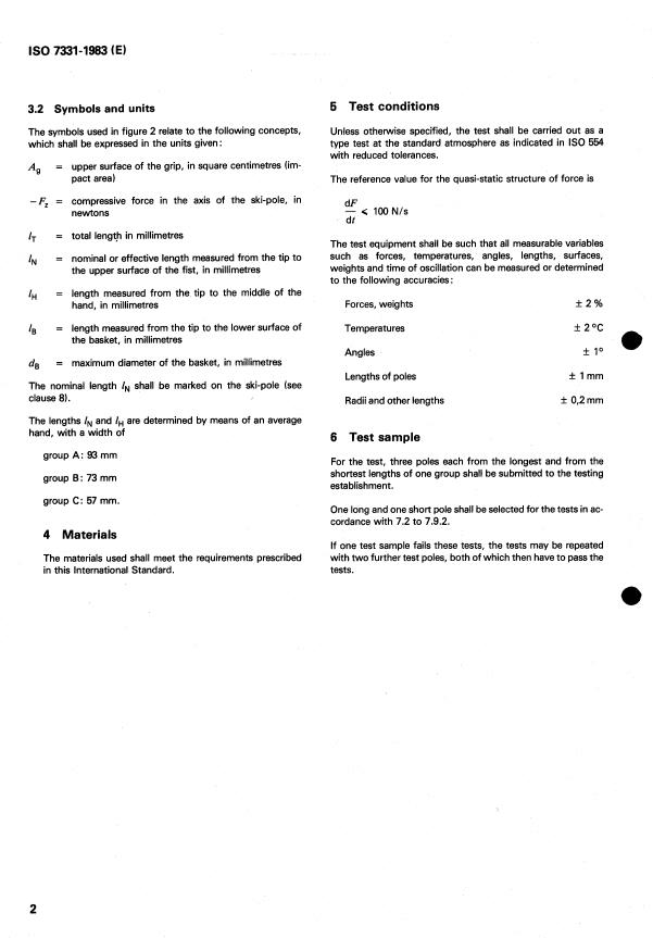 ISO 7331:1983 is a standard published by the International Organization for Standardization (ISO). Its full title is "Ski-poles for alpine skiing — Safety requirements and test methods". This standard covers: Ski-poles for alpine skiing — Safety requirements and test methods