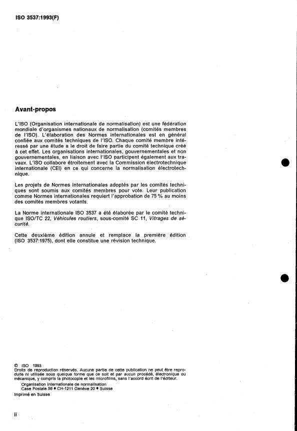 ISO 3537:1993 is a standard published by the International Organization for Standardization (ISO). Its full title is "Road vehicles — Safety glazing materials — Mechanical tests". This standard covers: Road vehicles — Safety glazing materials — Mechanical tests