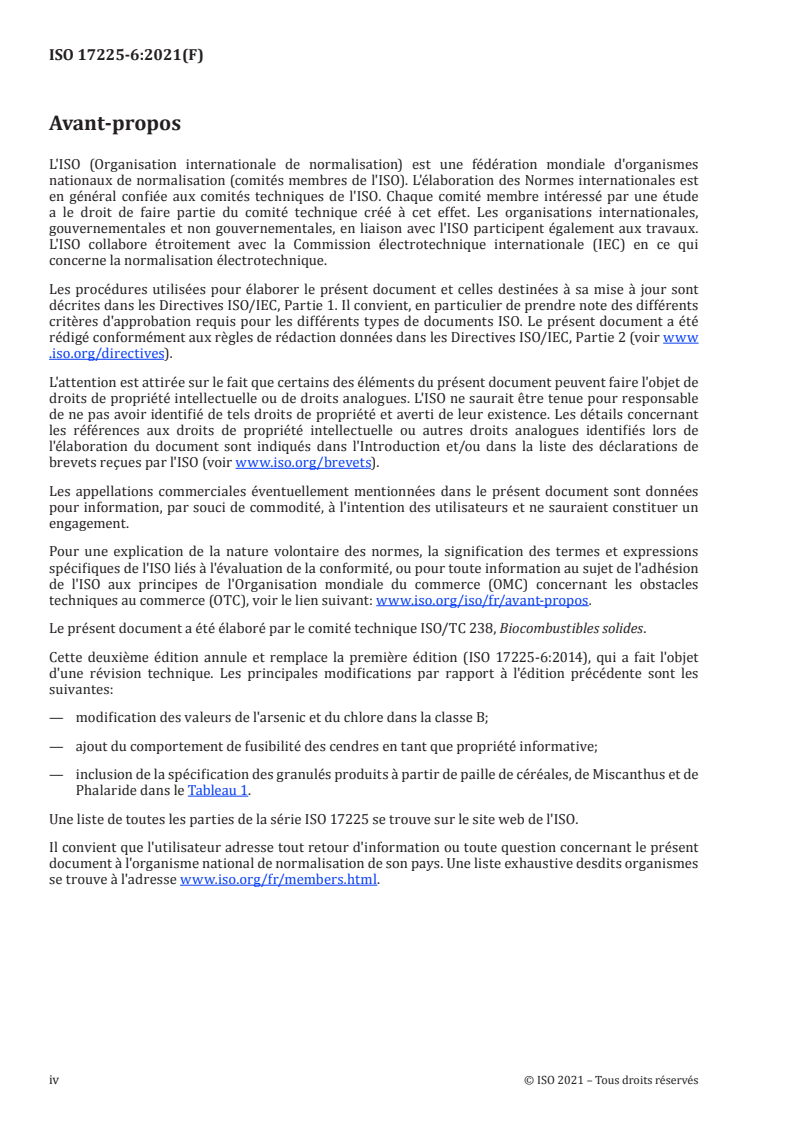 Cette deuxième édition annule et remplace la première édition (ISO 17225-6:2014), qui a fait l'objet