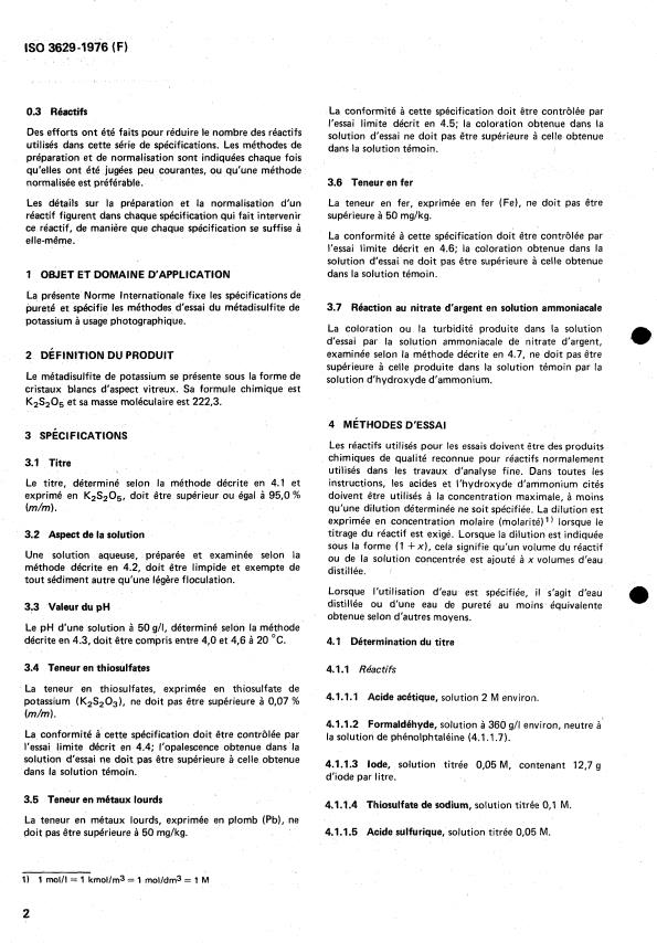 Descriptors : photographic materials, potassium metabisulphite, materials specifications, tests.
