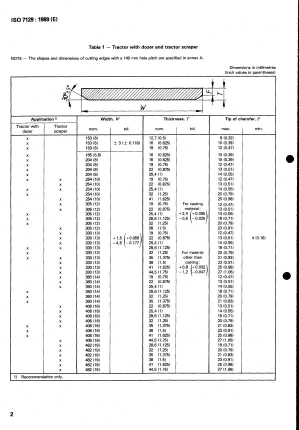 ISO 7129:1989 - Earth-moving machinery — Tractors with dozer, graders, tractor scrapers — Cutting edges — Principal shapes and basic dimensions Released:2/2/1989