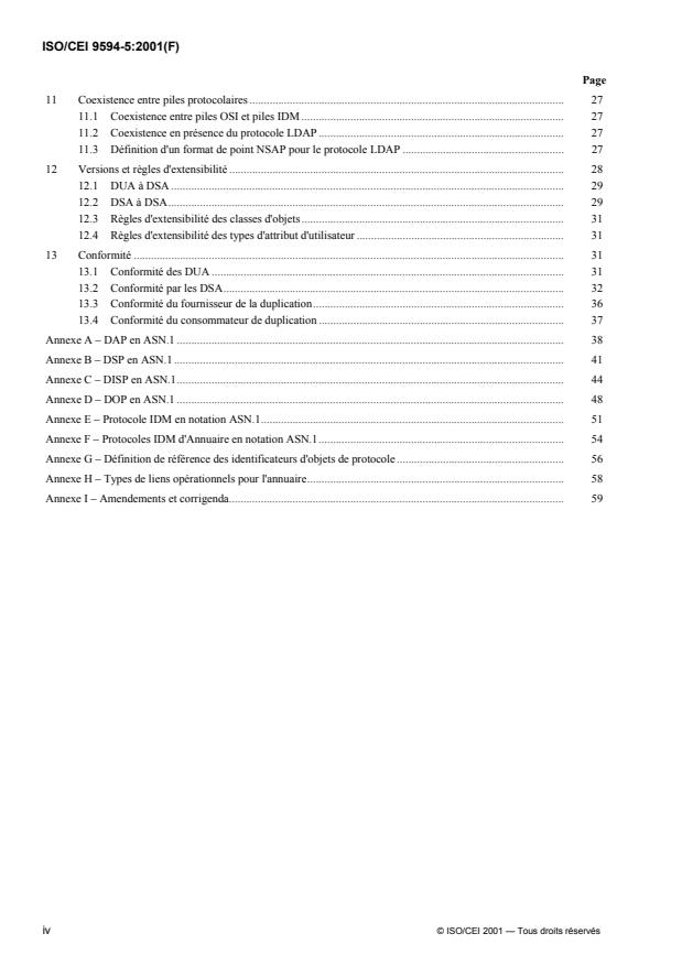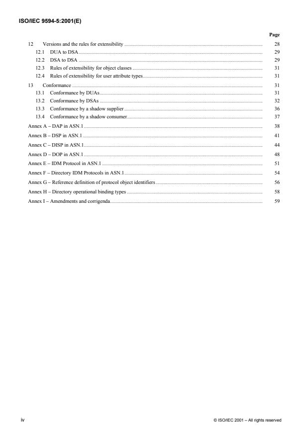 L'ISO/CEI 9594-5:2001 spécifie le protocole d'accès à l'annuaire, le protocole du système d'annuaire, le protocole de duplication des informations de l'annuaire et le protocole de gestion des liens opérationnels pour l'annuaire, satisfaisant aux services abstraits spécifiés dans les Rec. UIT-T X.501 | ISO/CEI 9594-2, X.511 | ISO/CEI 9594-3, X.518 | ISO/CEI 9594-4 et X.525 | ISO/CEI 9594-9.