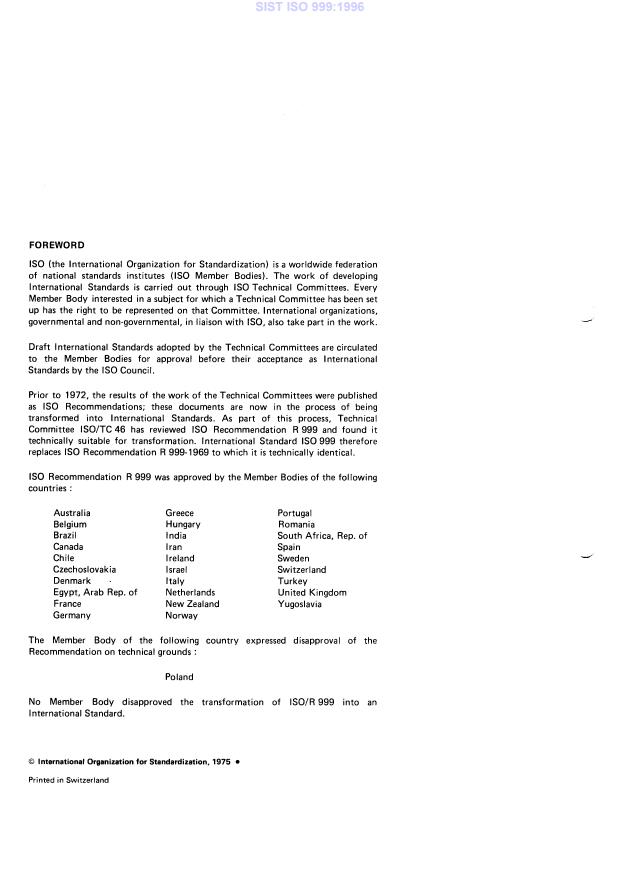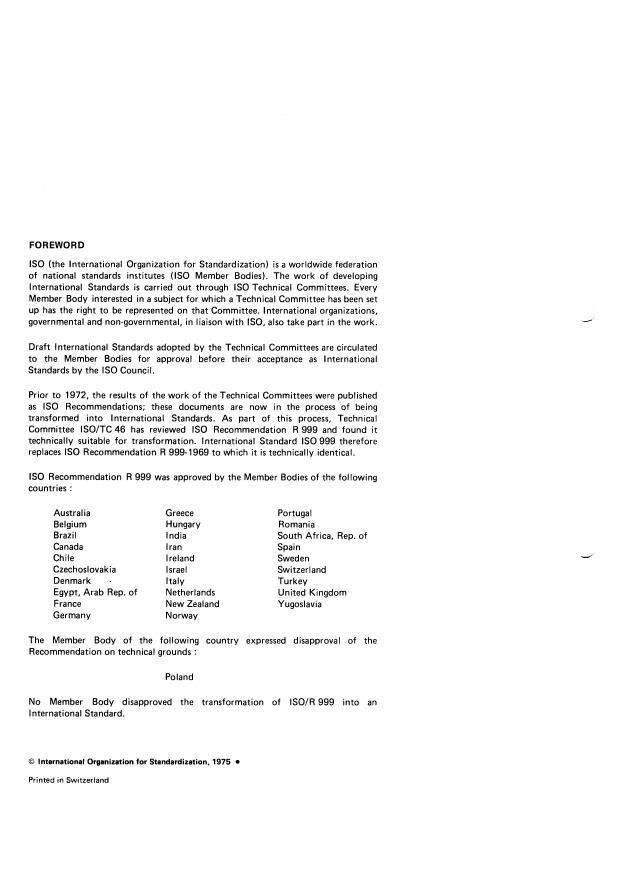 Committee ISO/TC 46 has reviewed IS0 Recommendation R 999 and found it